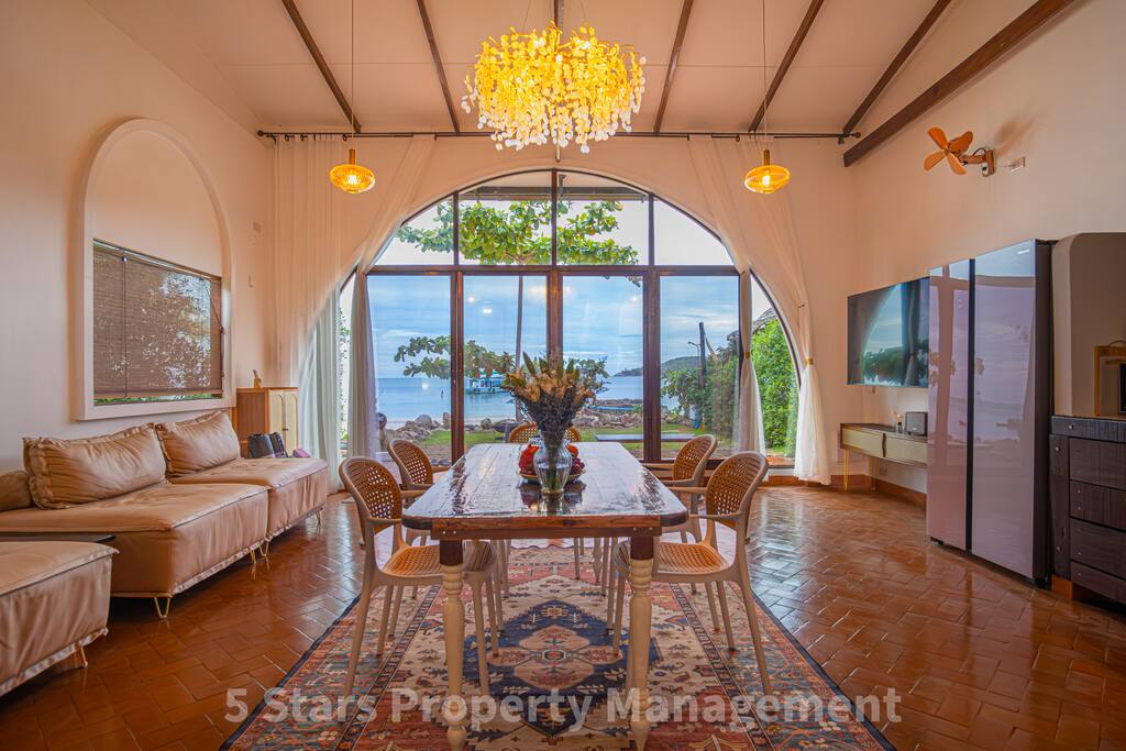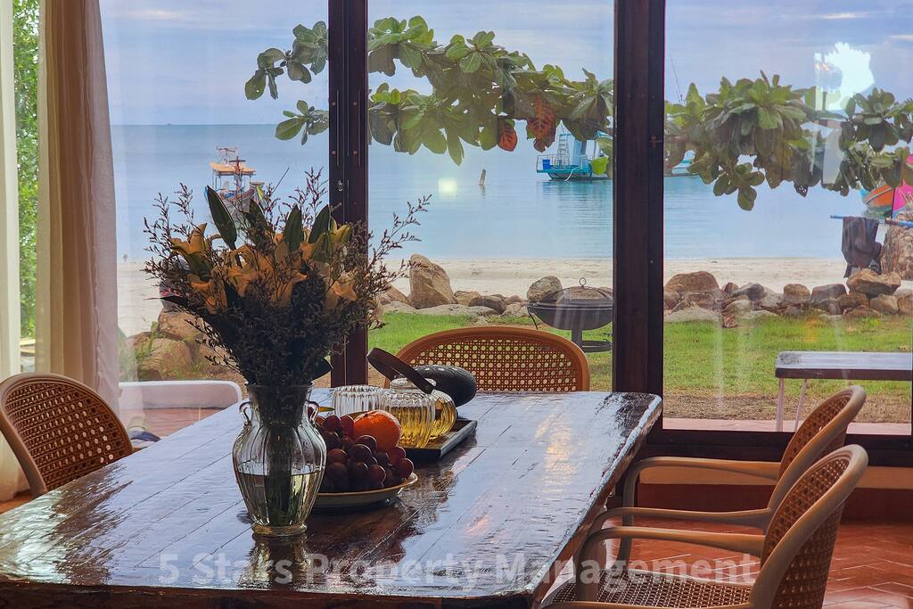 🏖️🏡Beautiful 2.5br beachfront villa, with unique design 🏗 Construction next door 🏗 Neighbour commences construction in daytime. It's intermittent & unpredictable. It explains very cheap price you are seeing right now - it accounts for possible disturbances. ❗️ Please DO NOT BOOK if you are noise-sensitive. 🚫Strictly No Parties🚫 - this area best suited for calm relaxing stays with a family and close ones, enjoying the beach and overlooking calm bay and the mountains