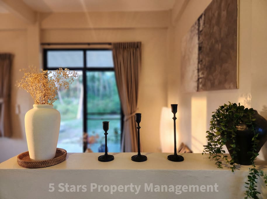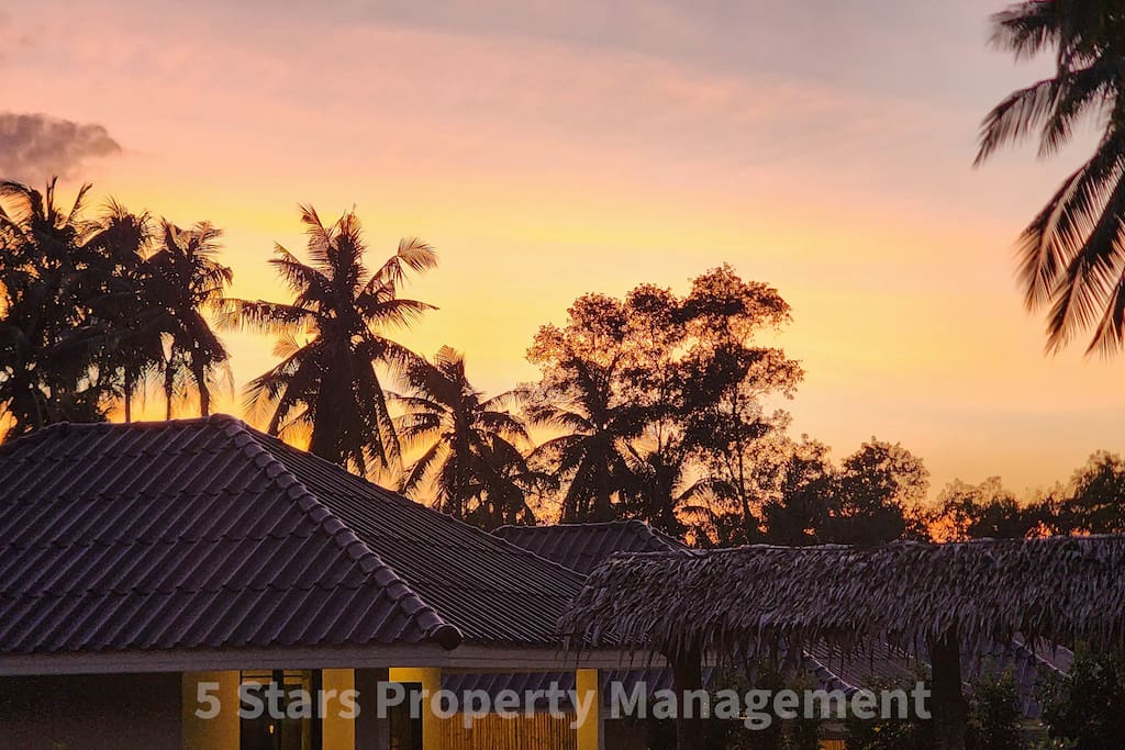 While we are in a convenient central location, the resort backs onto lush jungle, providing beautiful green views and the authentic sounds of tropical nature. Weekly cleaning and change of bed sets included by 5 Stars Property Management