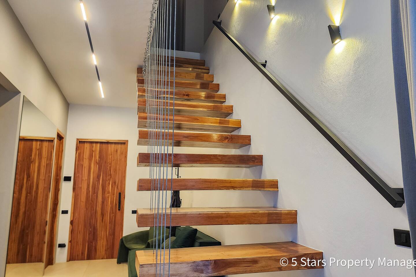 We call it White Castle, because it’s 🏰 White – and Higher than all other buildings around it. At your disposal: ✨ Spacious 3 bedrooms on 2 floors + exit to the roof to watch the 🌌 sky or ☀️ sunset/sunrise. 🛋️ Extra-large soft Sofa in the Living room with a huge 74-inch smart TV. 🌊 Saltwater Pool inside a lush garden with a nightsky projector and pool lights. 🍖 Premium Gas Barbeque on Patio: Outside kitchen and dining table for 8 persons 🍹 Various comfy chairs, bean bags and recliners 🌴 Green grass zone for kids 🚪 Private entrance and parking space. Inside: 🧑🍳🍲 Fully equipped kitchen: shaker, toaster, microwave, gas, 3 types of tea and coffee makers, new kitchenware, spices, oils, and coffees at your disposal. 📺 74-inch new smart TV with YouTube Premium, TLC stereo Bluetooth sound bar. 💻 Computer chair + working desk, 300Mbit fiber WIFI, laptop stand, LED lights cold/warm white. 🧻 Fully stocked bathroom: towels, shampoo, body wash, conditioner. 🛌 Fresh white bed linen set with premium pillows and a soft mattress for a great sleep.