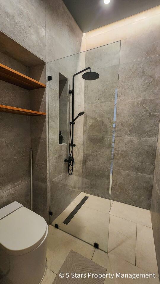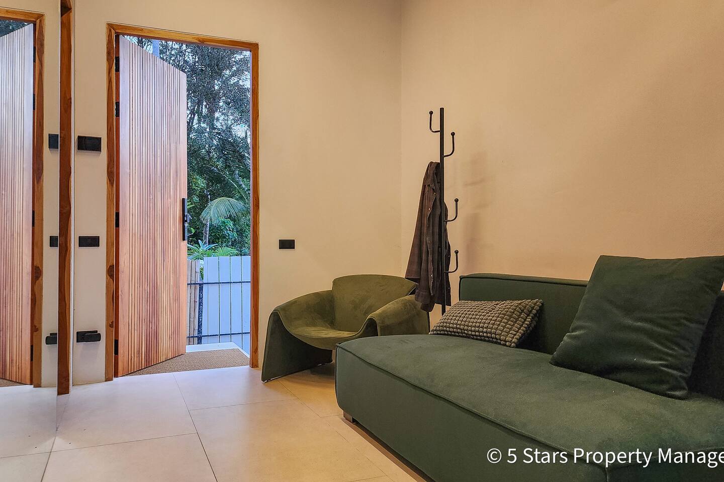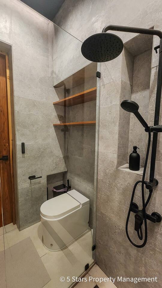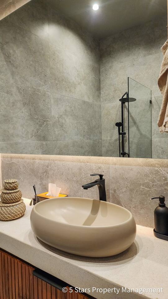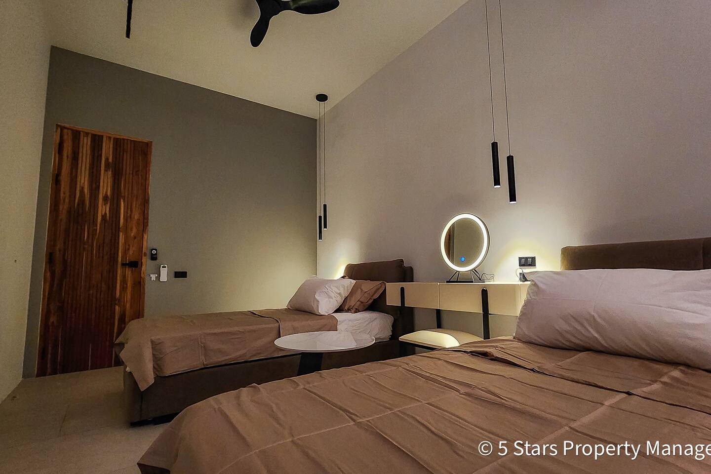 🏡 Stylish 3-Bedroom villa 🚫NO PARTIES🚫 🌊 with a private Saltwater Pool 🌴 in Lush Garden 🚿 3 FULL Bathrooms 💻 Dedicated workplace/2nd living room🤩 🛏 Sleeps 6 on king/twin beds +2 extra on sofa/topper 💤 Soft quality mattress & bed linen 🛵 Chic area – Deli Devi & Coconut Lane 📸 Newly built and decorated by pro-designer 🏗️ No construction around. 🌅 Rooftop access, Stunning mountain views 🚗 Private parking 💎 Weekly cleaning by 5 Stars (excl monthly stays)
