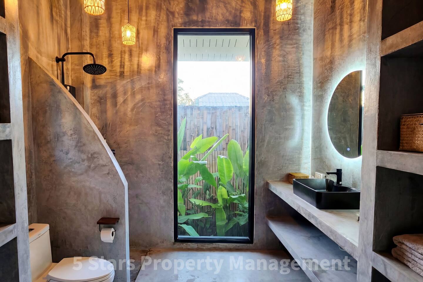 Welcome to your private tropical oasis. Matahari Hideaway is a collection of just five brand-new villas, professionally designed to offer a luxurious yet relaxed island experience. Every detail of this expansive 65sqm villa has been crafted for your comfort: ๐๐ค Rest & Recharge: Sink into a plush King-size bed featuring a soft orthopedic mattress and premium pillows. Blackout curtains and powerful air conditioning ensure a perfect night's sleep. ๐ณ Eat & Drink: The modern kitchenette is fully equipped for easy vacation cooking, featuring a sleek black two-burner electric hob, refrigerator, kettle, toaster, and essential cookware. Enjoy your morning coffee at the handcrafted wooden dining table. โจ Refresh: The polished concrete bathroom offers a spa-like feel with a soothing rainfall shower, modern fixtures, and a backlit mirror. ๐๏ธ Lounge: Relax in the cozy seating area with soft throws and natural light, perfect for reading or planning your next island adventure. ๐ธ Design: The villa features newly built architecture highlighted by professional interior decoration, combining industrial textures with natural wood and woven elements.