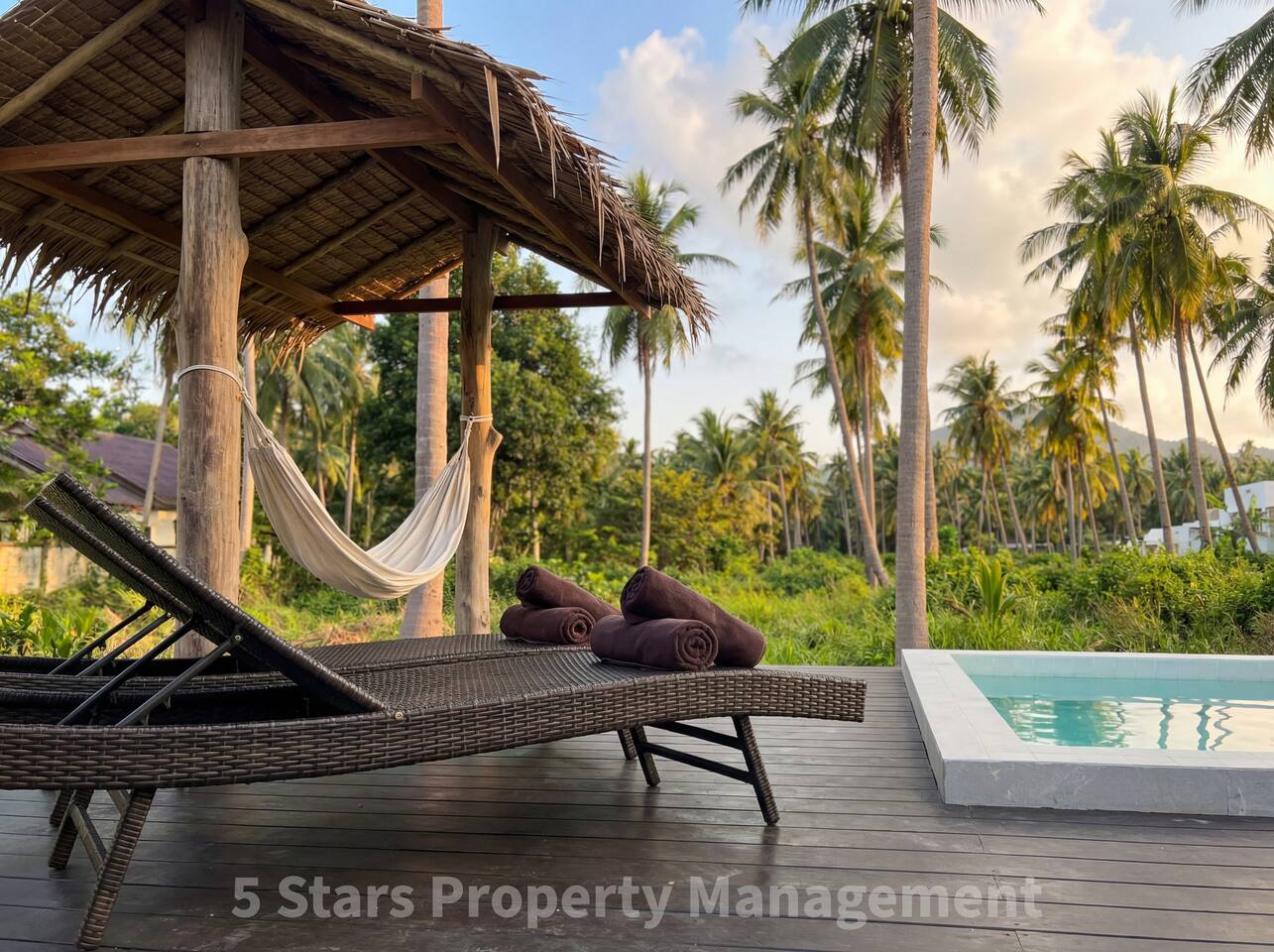 You will have exclusive, private access to your entire 65sqm one-bedroom villa. Guests also enjoy full access to the resort's shared common areas: ๐ A refreshing swimming pool with sun loungers. ๐ด A beautiful thatched-roof bamboo sala (pavilion) with a hammock, perfect for reading or watching the sunset over the jungle palms. ๐ Free on-site parking area.