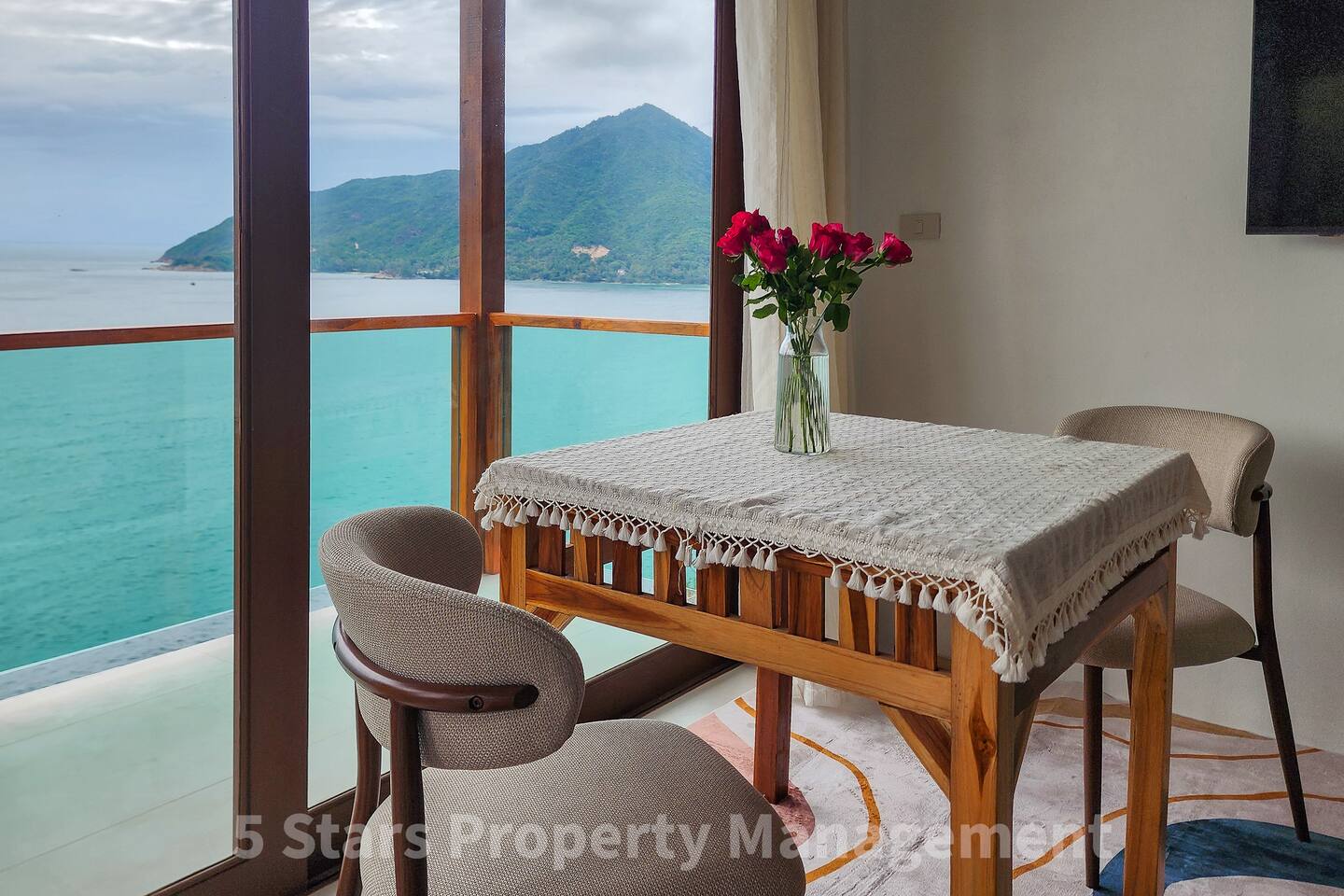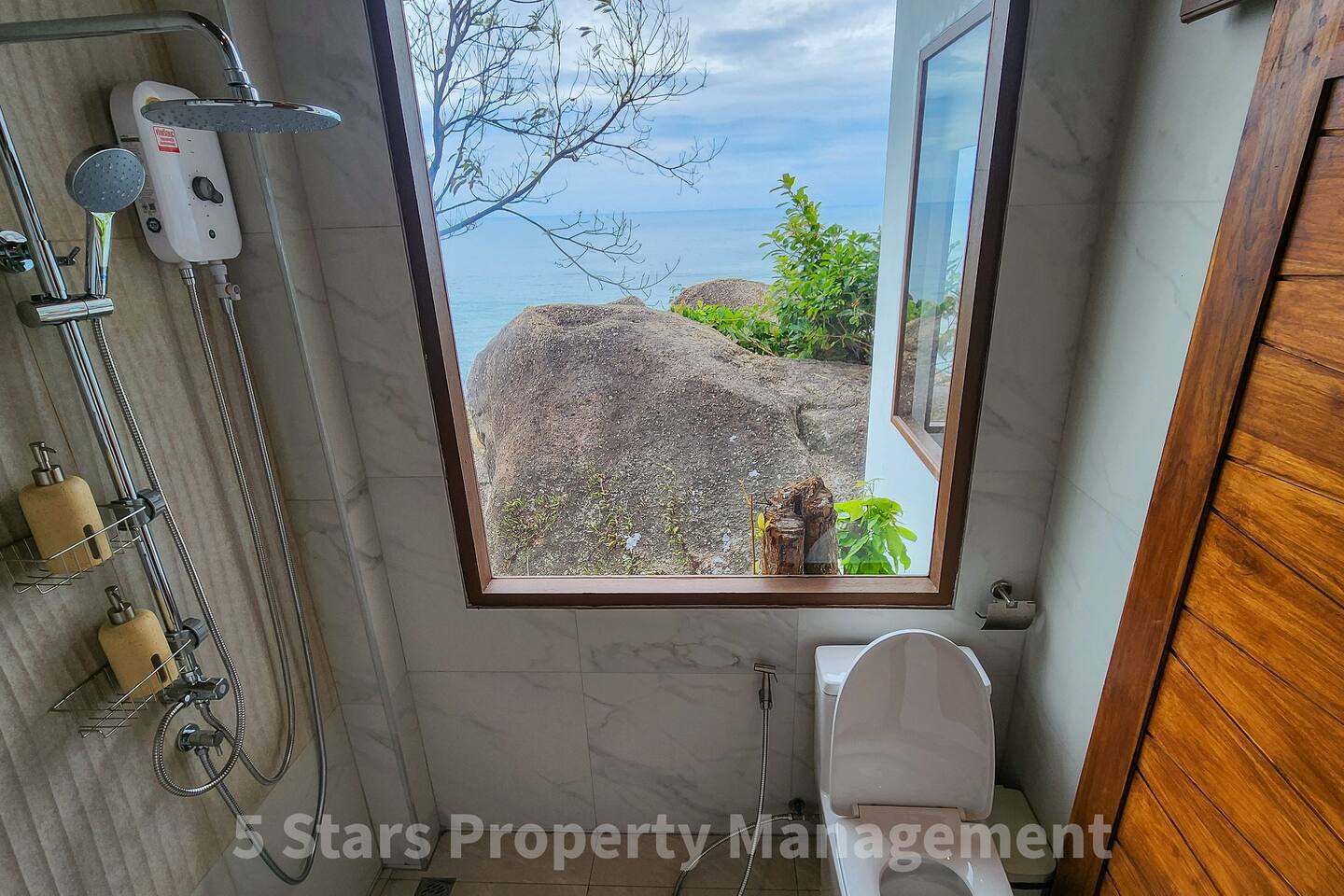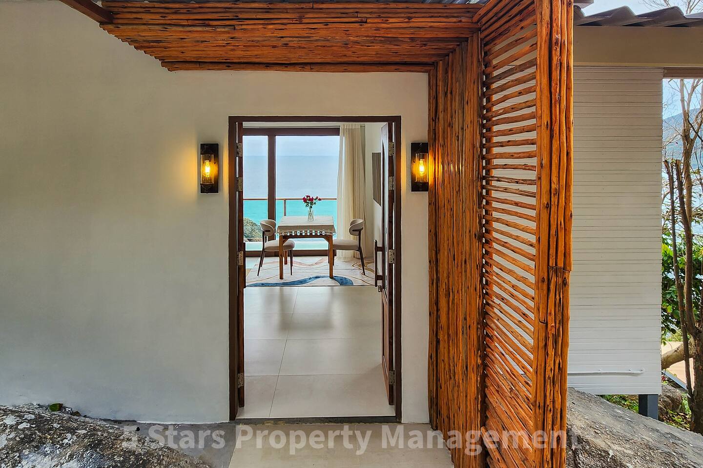 You have exclusive, private access to the entire villa and the surrounding deck. The property is located on a hillside to maximize the view, which requires walking up a set of stairs/pathway. Parking for motorbikes is available near the entrance.