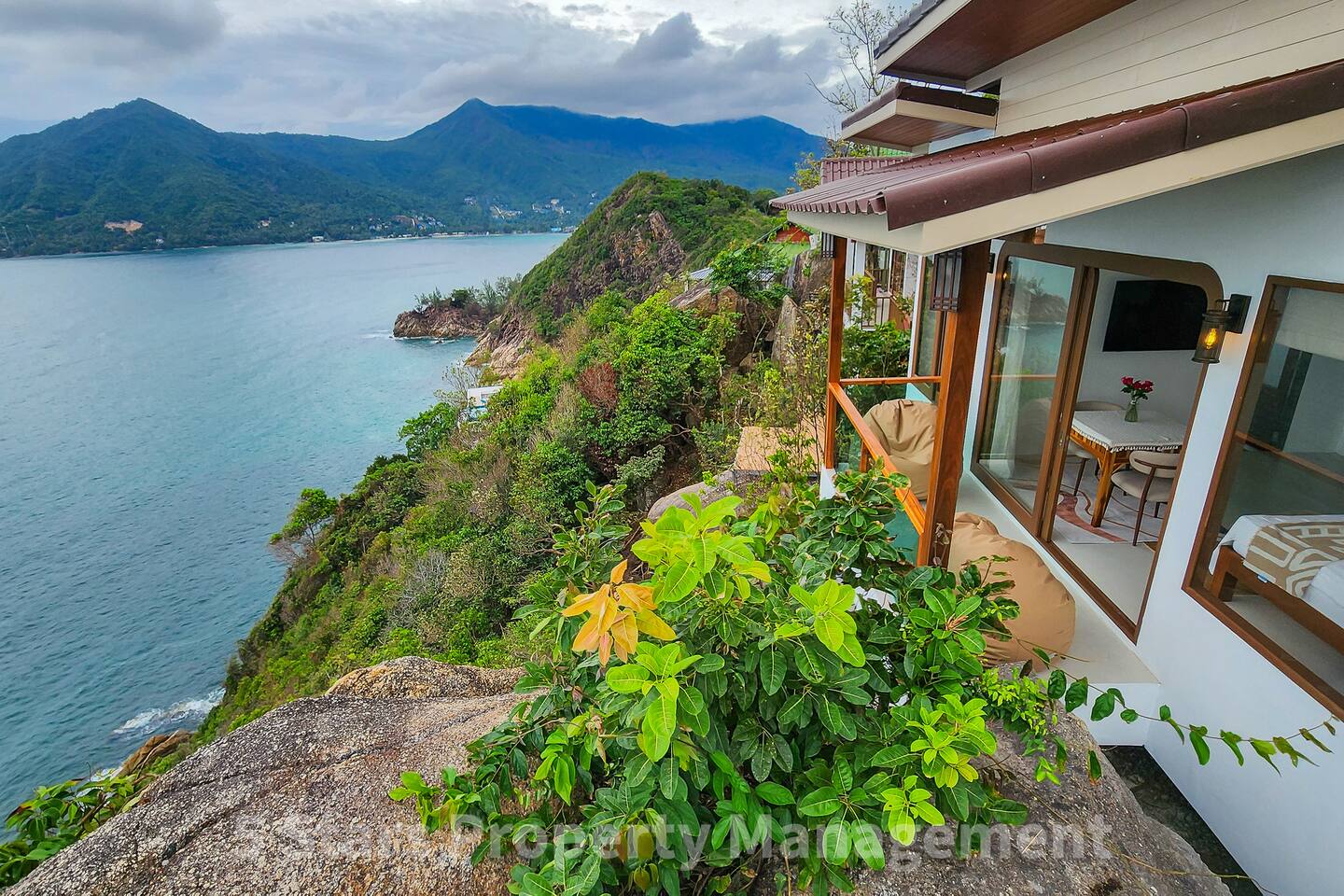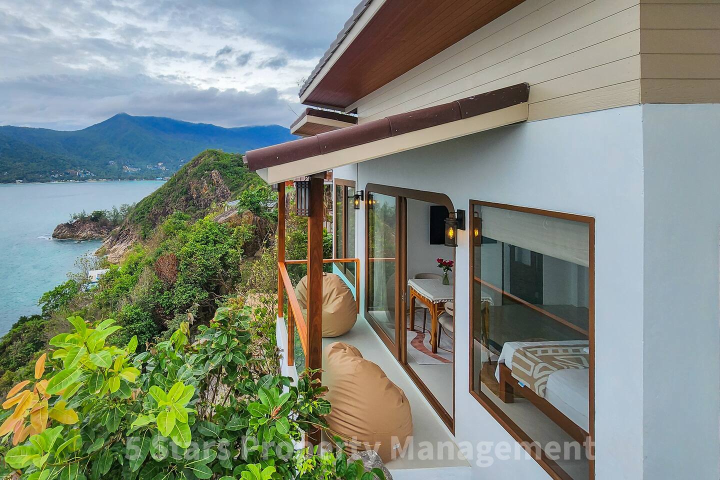 Wake up to 180-degree panoramic ocean views in this modern glass-walled cliffside sanctuary. Suspended above Chaloklum Bay, this private villa offers a front-row seat to Thailand’s most spectacular sunrises directly from your bed and private balcony.