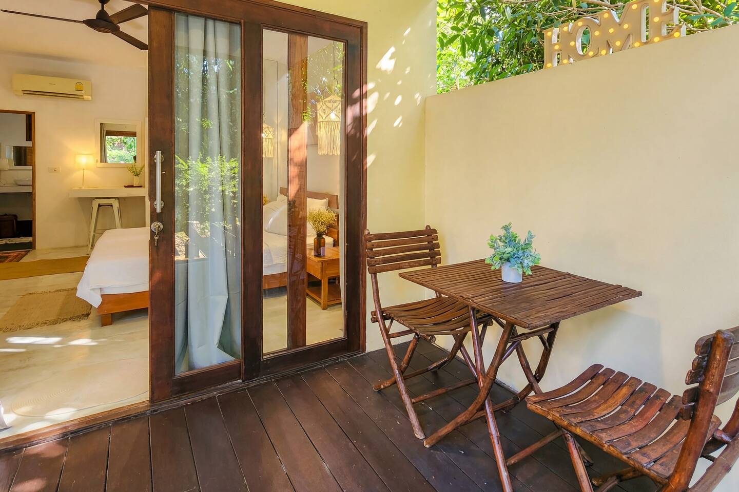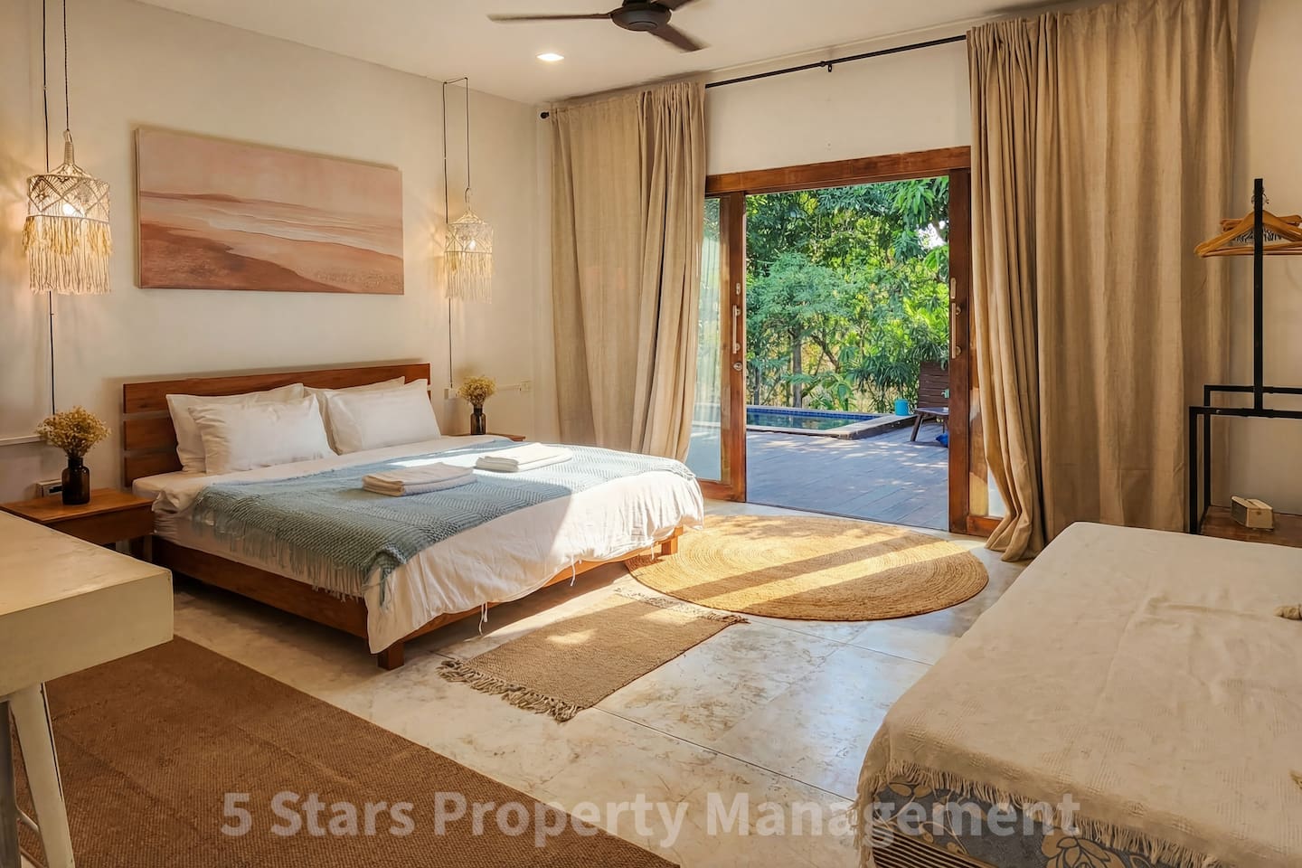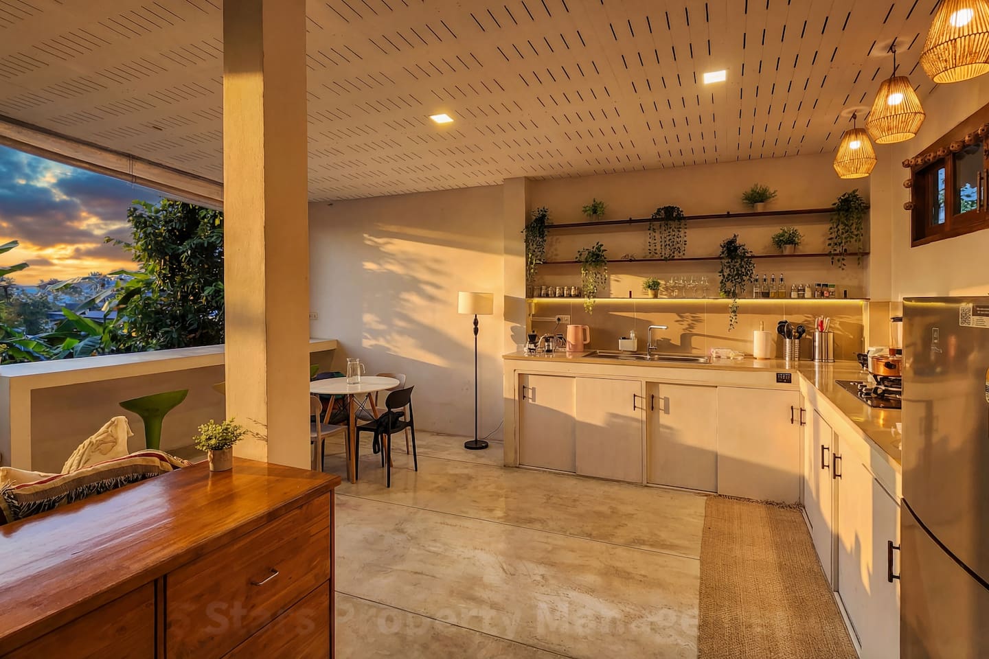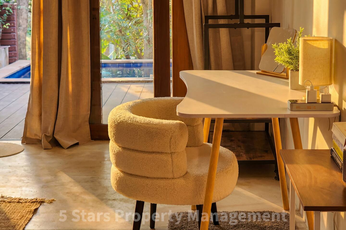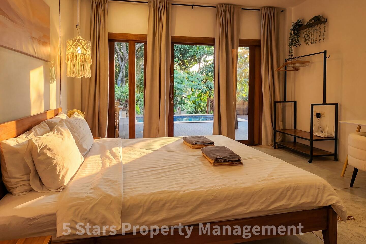 Wake up, slide open your door, and dive into your private pool surrounded by tropical greenery. This thoughtfully renovated villa offers the rare combination of designer comfort and genuine privacy in Koh Phangan's most laid-back village. Sleeping Bedroom 1 features a king bed plus additional sleeping, AC, and ensuite access. Bedroom 2 opens directly to the pool deck with its own workspace—ideal for morning work sessions with garden views. Living & Working Open-plan living flows into a fully equipped kitchen with sunset views through floor-to-ceiling windows. The dedicated workspace has an ergonomic chair and good natural light. Outdoors Your private pool and wooden deck are framed by one of the largest private gardens in the area—a genuine rarity here. 📸 Newly designed and decorated by professional interior designer 🛌 Soft orthopedic mattress & premium pillows 💎 Weekly cleaning by 5 Stars company 🎉 Concierge service: motorbike rental, yacht trips, diving, freediving, kite surfing, e-foil & more